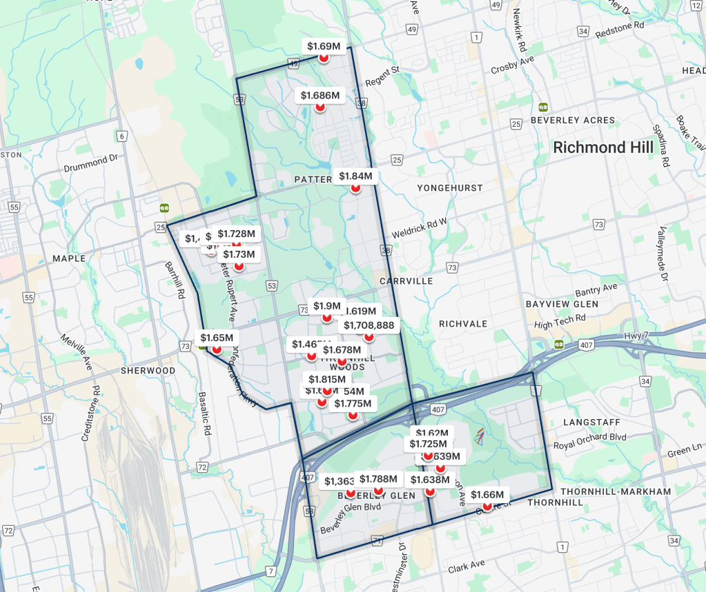 The first maps listings shows 7 homes for sale, most of them are sitting on the market 60 days, 90 days, even 100+ days, while others in the same area were SOLD (the second maps shows the same area , same search, but SOLD since Oct 1, 2025)